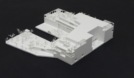 Der Baukörper treppt sich skulptural zum Freiraum und den Nachbarbebauungen ab und ermöglicht damit in allen Ebenen Aufenthaltsflächen im Freien.