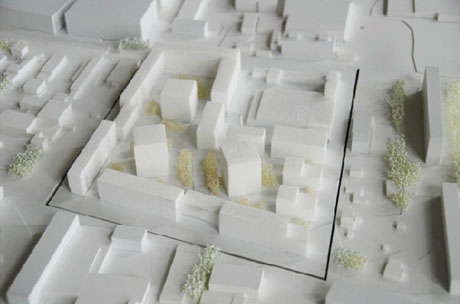 Der urbane Platz vor der Sargfabrik ist in das Konzept der Oase integriert und funktioniert als Verbindung und Schnittstelle zwischen den ruhigen wohnbaubezogenen Freiräumen und den lebendigen Nutzungen in der Sargfabrik. Durch die Anordnung der Tiefgarage und der Einlagerungsräume unter die bebauten Flächen werden große unbefestigte Flächen zwischen den Gebäuden geschaffen. Dies ermöglicht die Pflanzung vieler Bäume und die ökologische Gestaltung der Freiräume.